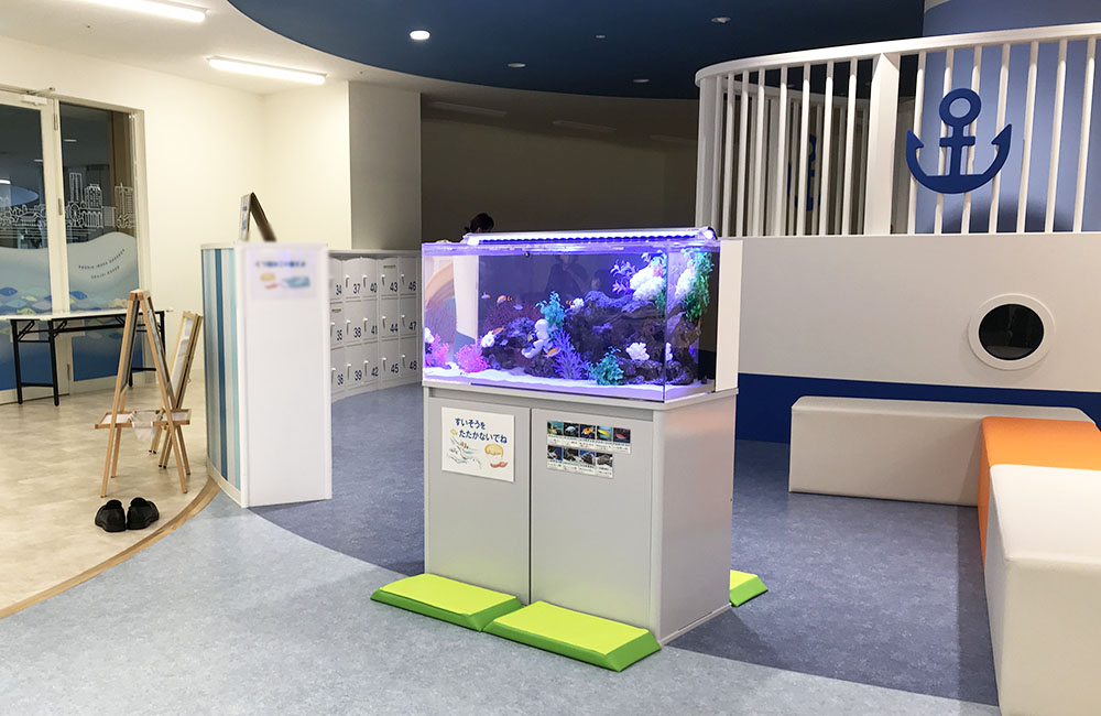 兵庫県神戸市のこべっこあそびひろば・六甲アイランド様より、90cm海水魚水槽の水槽リースサービスをご利用いただきました。